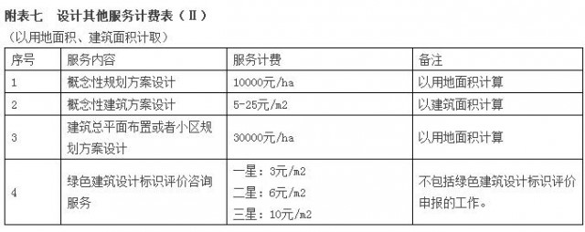 3.2 設(shè)計(jì)服務(wù)可采用以投資費(fèi)率方式計(jì)費(fèi),也可在部分項(xiàng)目上以投資費(fèi)率為參照,采用單位建筑面積方式計(jì)費(fèi)或以工日定額方式計(jì)費(fèi),具體由發(fā)包人與設(shè)計(jì)人協(xié)商確定。