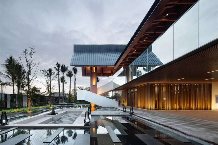 在設(shè)計中,我們往往需要同時照顧兩個相反的原則,在控制的同時釋放,在放下的時候提起,在前進(jìn)的時候后退,在延續(xù)的同時打破。在當(dāng)下大部分啟動區(qū)氣質(zhì)趨向于統(tǒng)一的時候,如何通過傳統(tǒng)文化和現(xiàn)代美學(xué)的結(jié)合,打造出“不堆疊符號、不單調(diào)重復(fù)”的建筑形式,將是一個被廣泛討論的命題。我們希望找到一種方式,在設(shè)計中真正能做到在大的同時小一點,在輕的同時重一點,在深的同時淺一點,在傳統(tǒng)的同時現(xiàn)代一點,因為所有的元素都能最終找到一種方式共存,所有的探索本質(zhì)上都是對下一波浪潮的可愛幻想。本項目位于海南省??谑?,作為該地塊的展示中心及售樓中心,本案引領(lǐng)了整個地塊的精神面貌。業(yè)主希望建筑兼顧功能與審美的需求,風(fēng)格上體現(xiàn)當(dāng)?shù)亟ㄖ厣耐瑫r,不失現(xiàn)代流行氣質(zhì)。由繁至簡,探討形體上的另一層境界;由簡至繁,感悟與理解隨之不斷升華。完整表達(dá)設(shè)計的初衷,需要靠所有人不懈的努力和互相理解,在此由衷感謝業(yè)主從項目之初到建筑落筆以來對我們的信任,和不遺余力的支持。